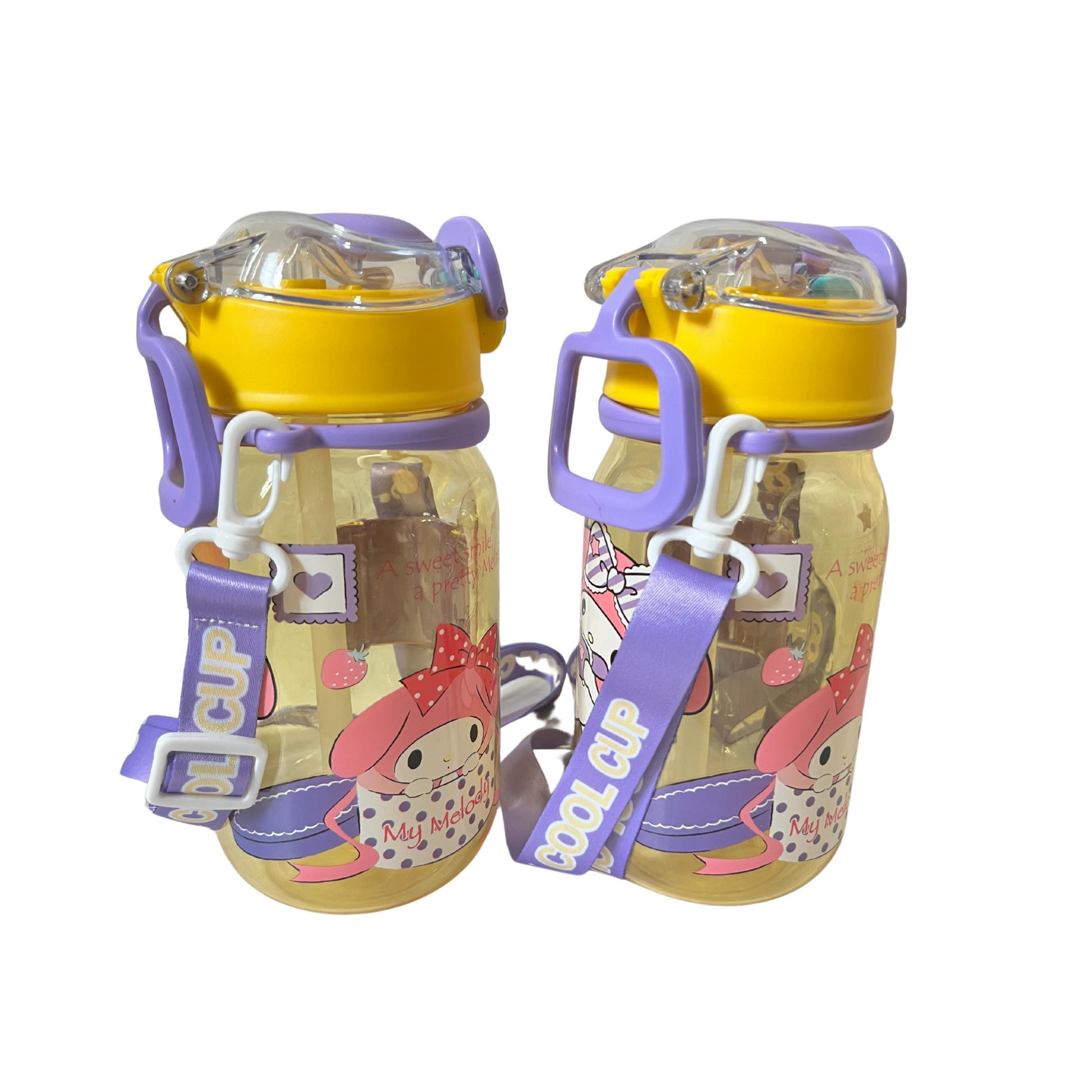 Crafted from high-quality BPA-free plastic, it features a secure lock system, built-in straw, and adjustable strap for easy carrying. The leak-proof design ensures zero mess, while the fun stickers let your child personalize their bottle and show off their creativity!